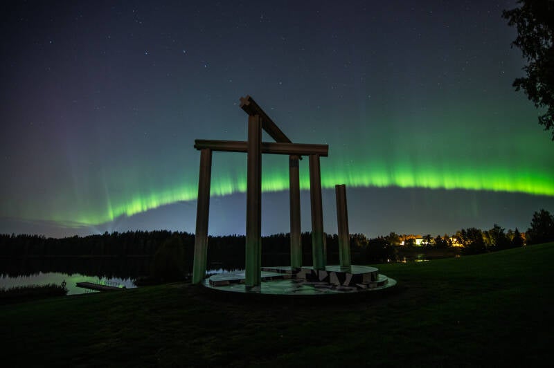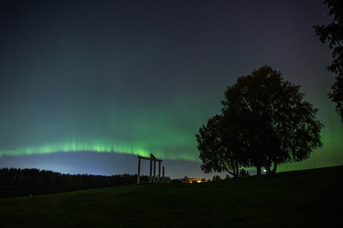 Flott nordlys over Nordbytjernet. Seint fredag kveld var nordlyset synlig over store deler av Sør-Norge.